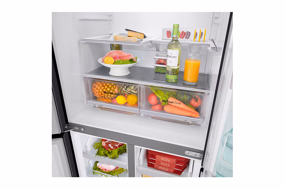 Le compresseur linéaire LG Inverter aide à maintenir l’apparence et le goût des produits frais plus longtemps en réduisant les fluctuations de température.